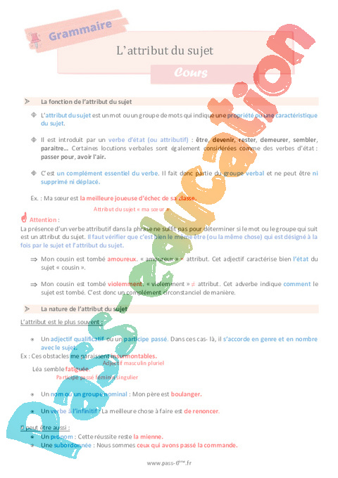Cours de grammaire sur l’attribut du sujet en 6ème.