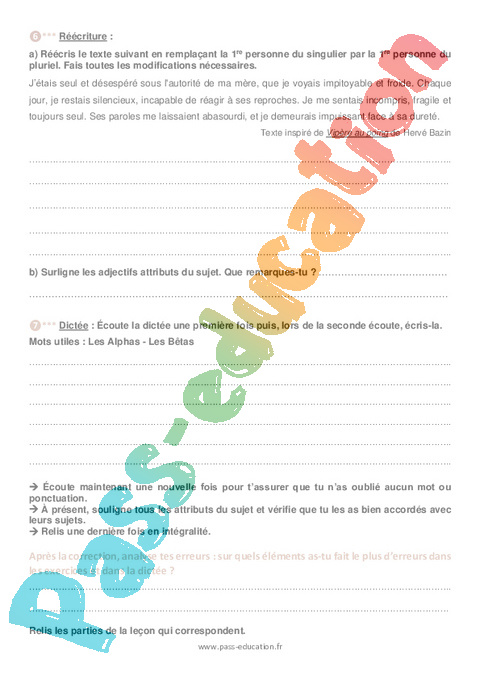 Exercices L’attribut : 3eme Secondaire – Je me prépare au Brevet rtf