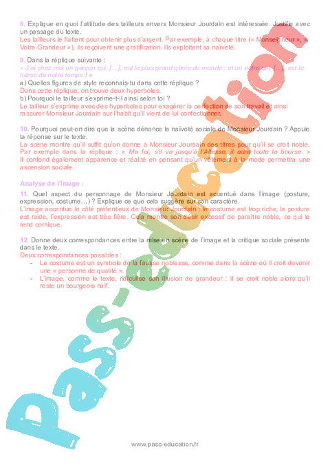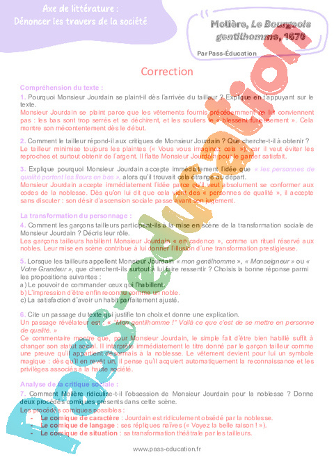 Correction Questionnaire Le Bourgeois gentilhomme (Molière) : 3eme Secondaire pdf