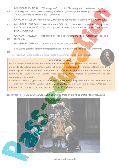 Littérature Le Bourgeois gentilhomme (Molière) : 3eme Secondaire rtf