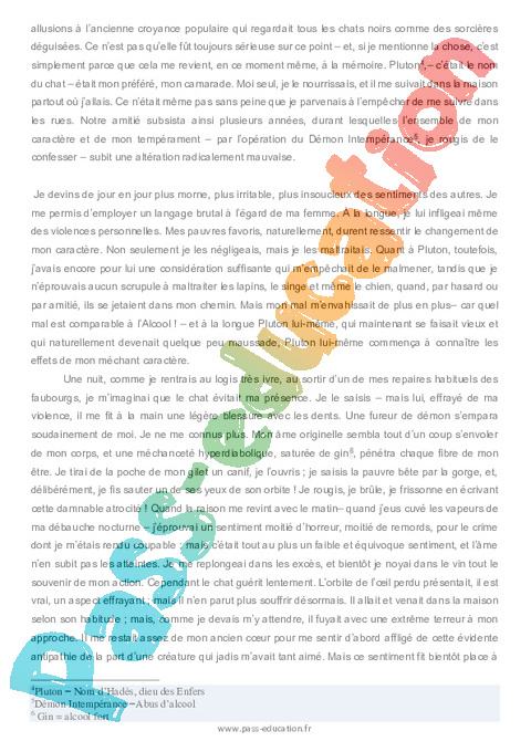 Littérature Le chat noir, Edgar Allan Poe,1843 : 2eme Secondaire pdf