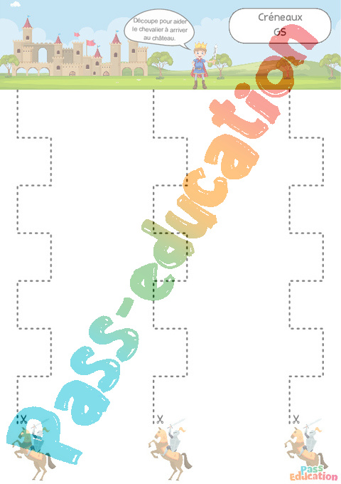 Le Chevalier – Créneaux – S’entraîner à découper pour mieux maîtriser le geste graphique, un premier pas vers l’écriture en : 3eme Maternelle .
