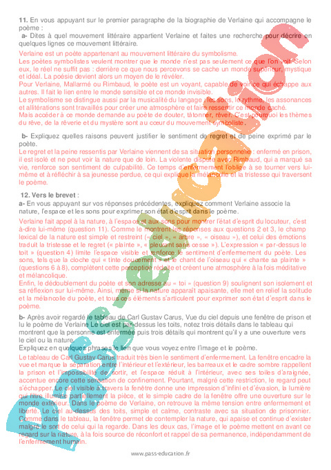 11. En vous appuyant sur le premier paragraphe de la biographie de Verlaine qui accompagne le poème :
