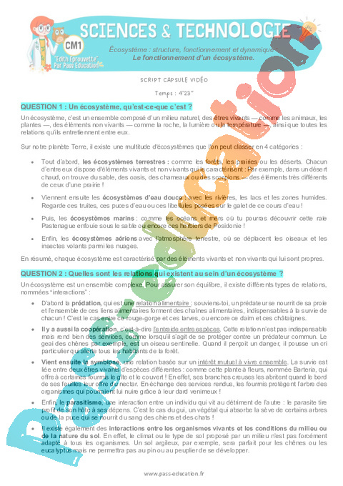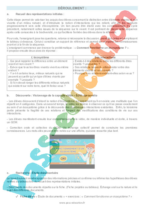 2 Script Le fonctionnement d’un écosystème : 4eme Primaire pdf