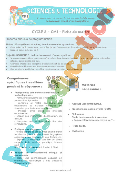 4.1 Correction Fiche Elève Le fonctionnement d’un écosystème : 4eme Primaire pdf