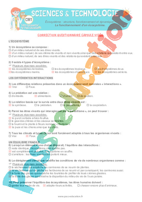 3.1 Correction QCM capsule vidéo Le fonctionnement d’un écosystème : 4eme Primaire pdf