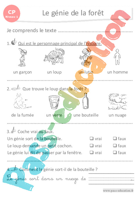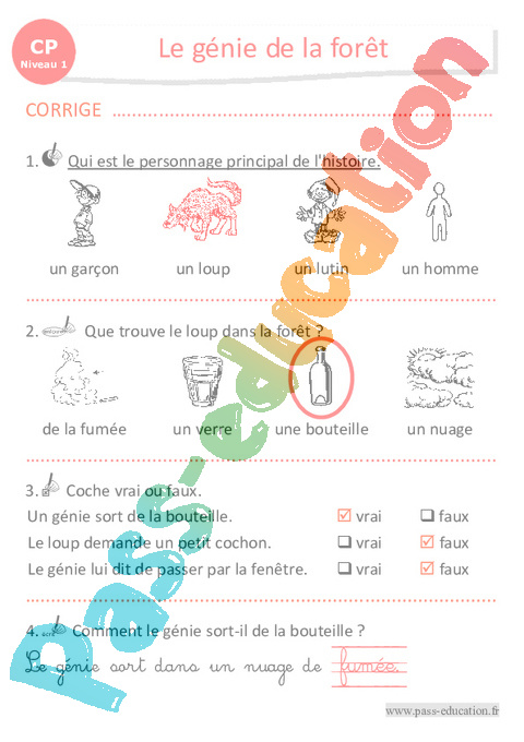Questionnaire Le génie de la forêt : 1ere Primaire – Luminéo – Niveau 1 + Correction pdf