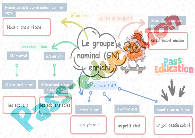 Le groupe nominal avec adjectif – Carte mentale pour la 3eme Primaire pdf
