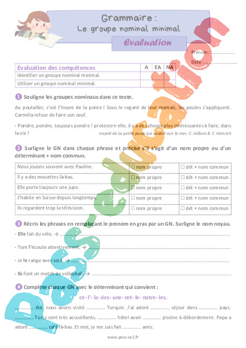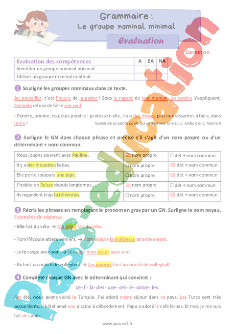 Evaluation Correction : 3eme Primaire Le groupe nominal minimal pdf