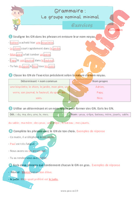 Exercices Correction : 3eme Primaire Le groupe nominal minimal pdf