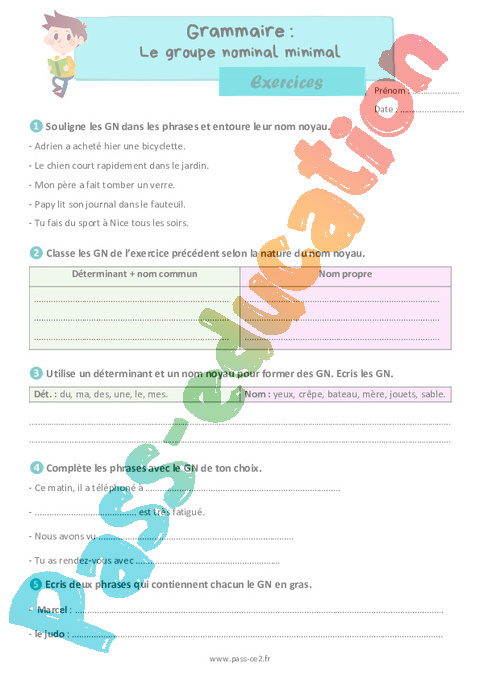 Exercices : 3eme Primaire Le groupe nominal minimal rtf