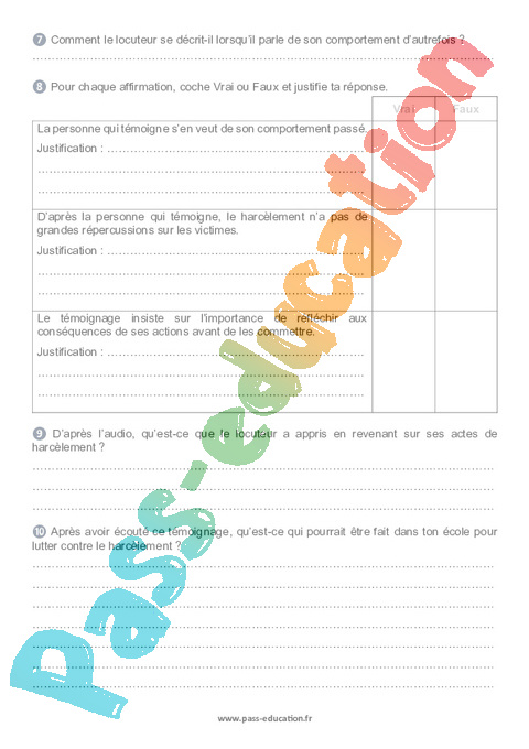 ❿ Après avoir écouté ce témoignage, qu’est-ce qui pourrait être fait dans ton école pour lutter contre le harcèlement ?