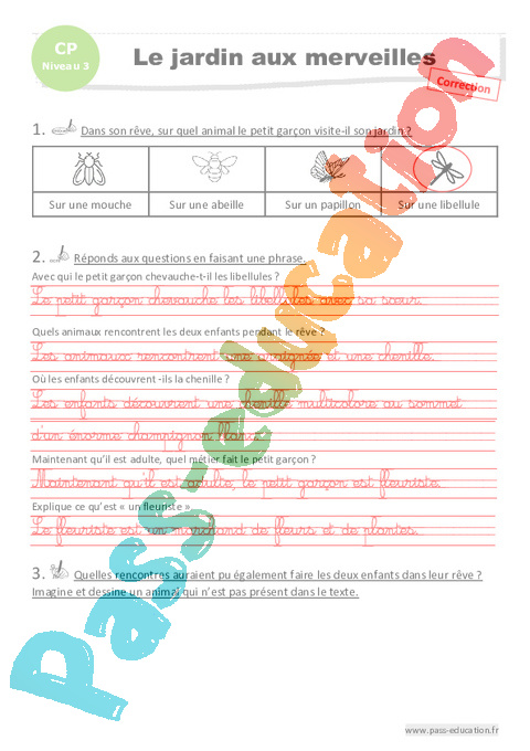 Correction Questionnaire Lecture Le jardin aux merveilles : 1ere Primaire – Luminéo pdf