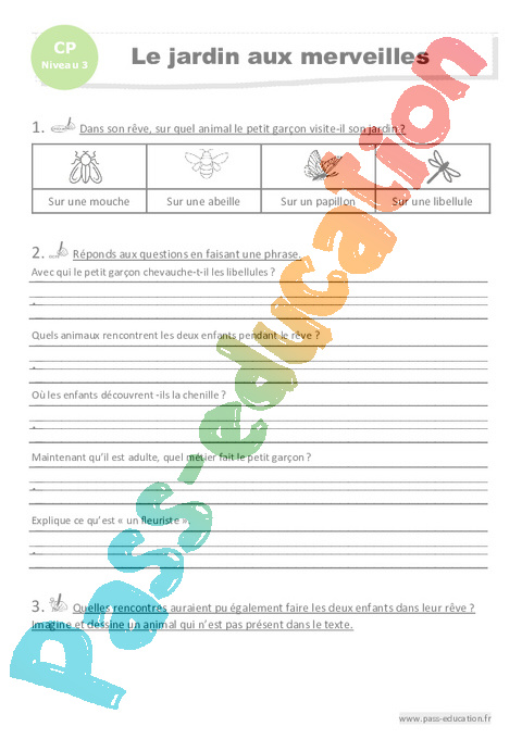 Questionnaire Lecture Le jardin aux merveilles : 1ere Primaire – Luminéo pdf