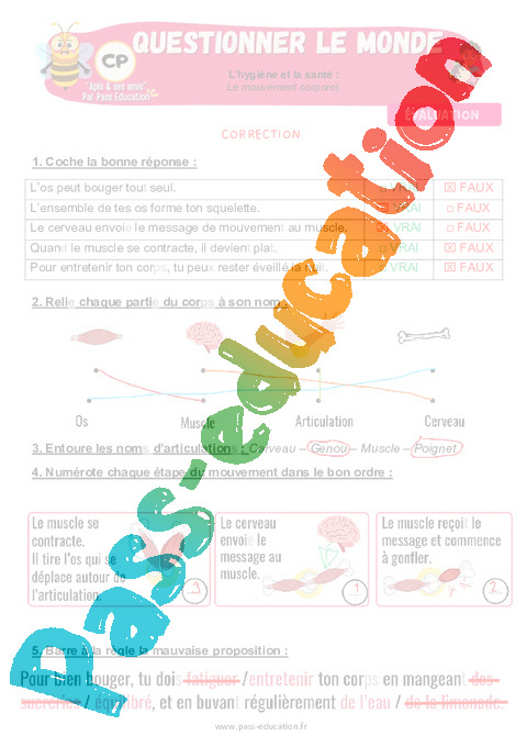 6.1 Correction Evaluation : 1ere Primaire Le mouvement corporel rtf