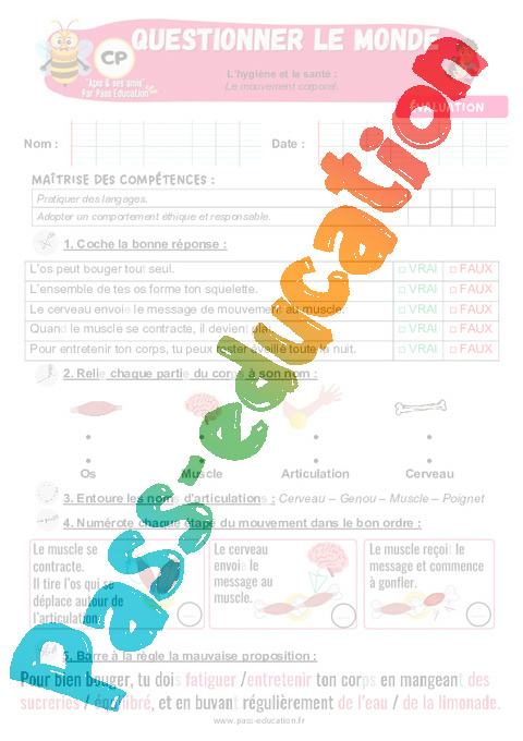 Evaluation – Le mouvement corporel en 1ere Primaire – Apis & ses amis : Questionner le monde.