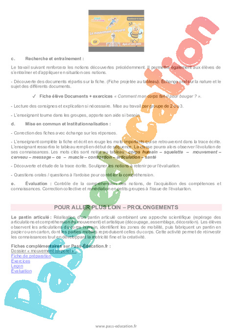 1 Fiche de préparation : 1ere Primaire Le mouvement corporel pdf