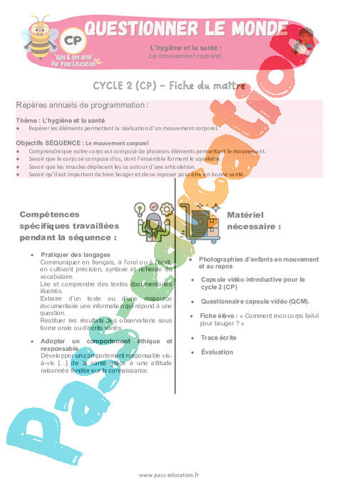 3 QCM caspule vidéo : 1ere Primaire Le mouvement corporel pdf