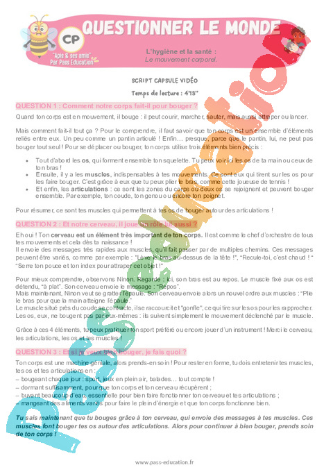 2 Script : 1ere Primaire Le mouvement corporel pdf