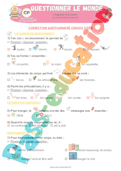 3.1 Correction QCM capsule vidéo : 1ere Primaire Le mouvement corporel rtf