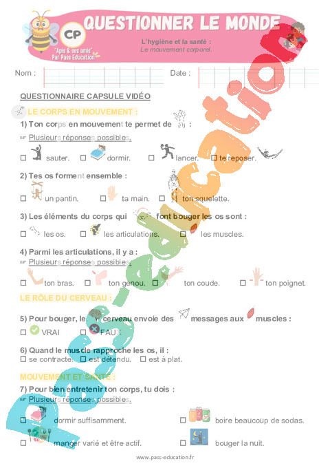 3 QCM caspule vidéo : 1ere Primaire Le mouvement corporel rtf