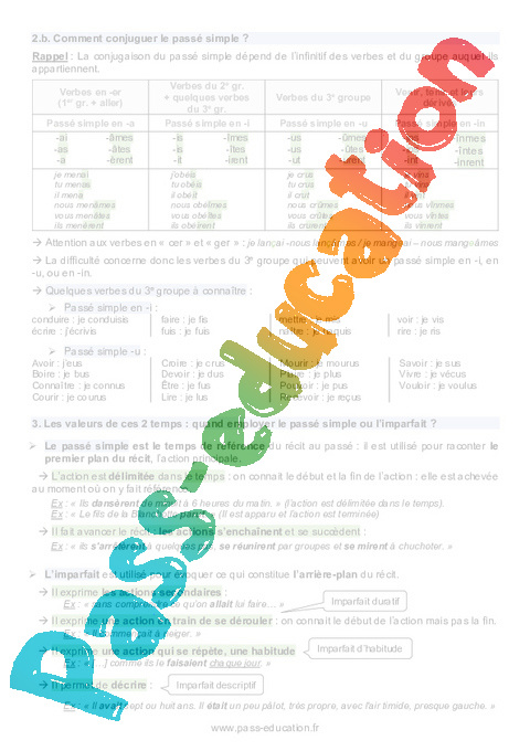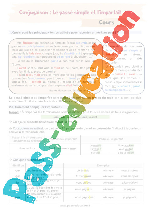 Cours : 2eme Secondaire Le passé simple et l’imparfait pdf