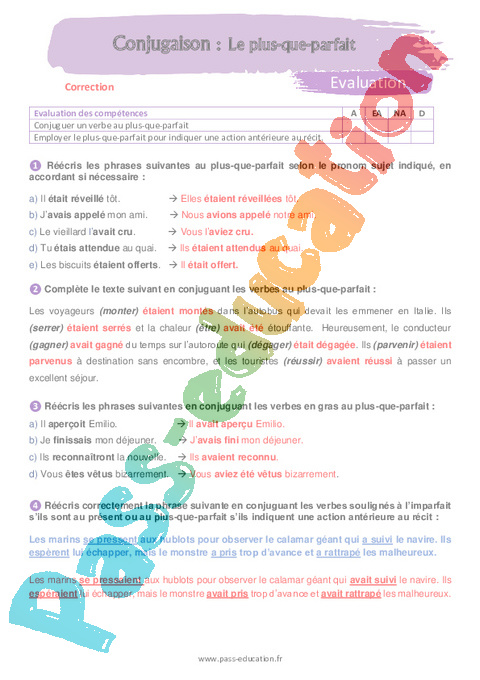 Correction Evaluation : 1ere Secondaire Le plus-que-parfait pdf