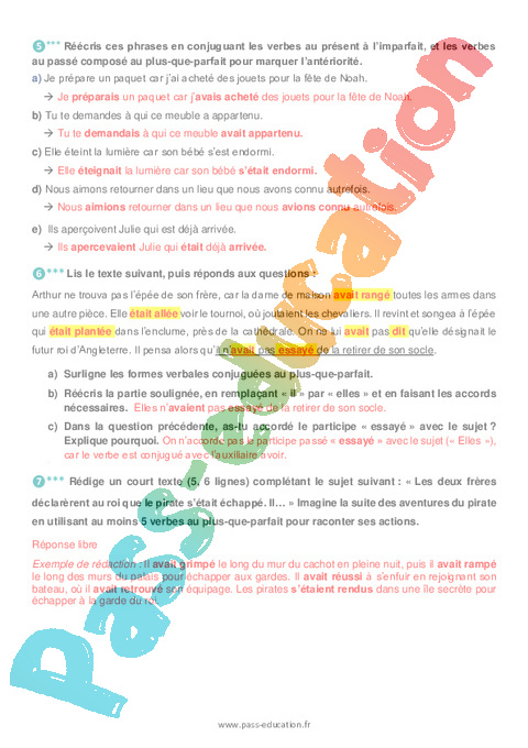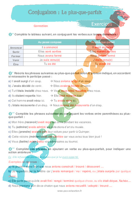 Correction Exercices : 1ere Secondaire Le plus-que-parfait pdf