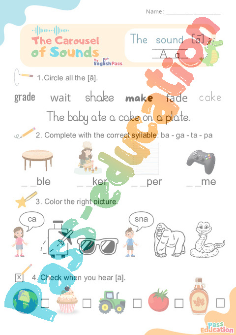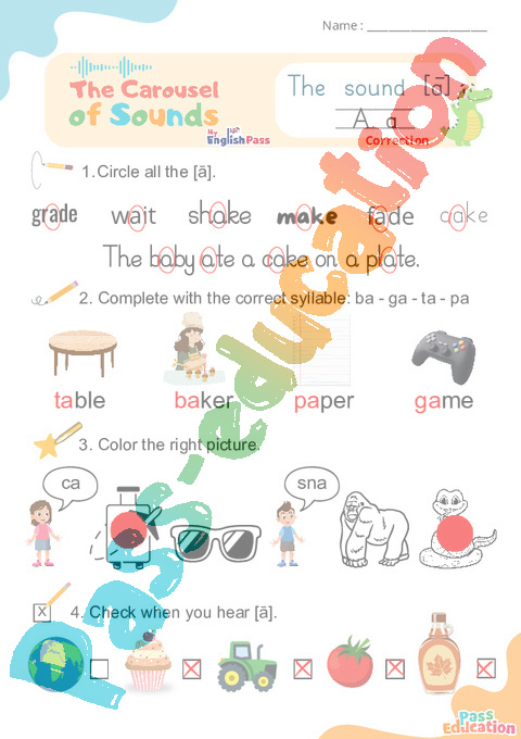 Correction Le son [ā] A a – Phonologie anglaise – Carousel of Sounds – Fiche pdf