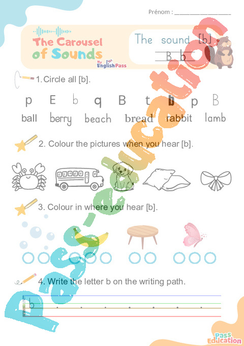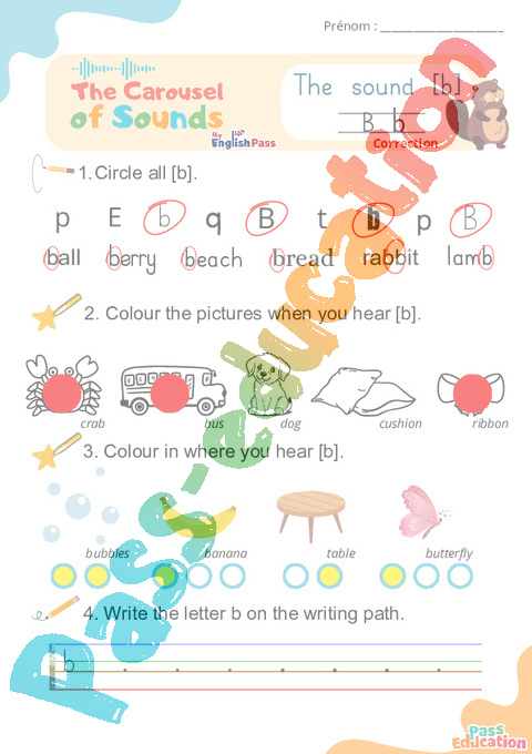 Correction Le son [b] B b – Phonologie anglaise – Carousel of Sounds – Fiche pdf