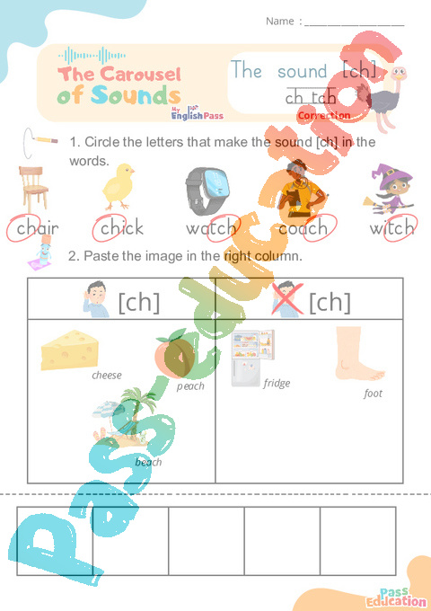 Correction Le son [ch] ch tch – Phonologie anglaise – Carousel of Sounds – Fiche pdf