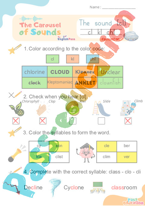 Correction [cl] cl kl chl – Phonologie anglaise – Carousel of Sounds – Fiche pdf