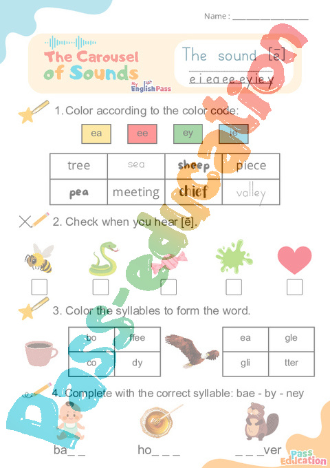 Le son [ē] e i ea ee ey ie y – Phonologie anglaise – Carousel of Sounds – Fiche pdf