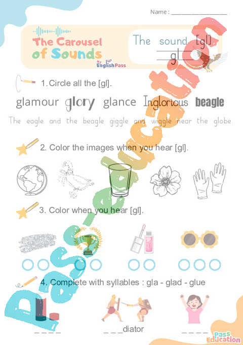 Son [gl] gl – Phonologie anglaise – Carousel of Sounds – Fiche pdf