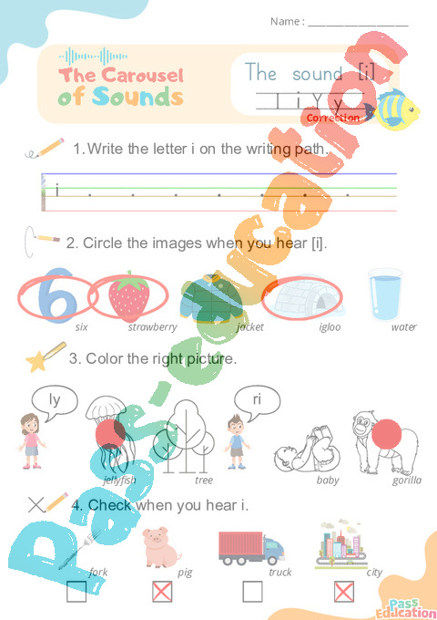 Correction Le son [i] y – Phonologie anglaise – Carousel of Sounds – Fiche pdf