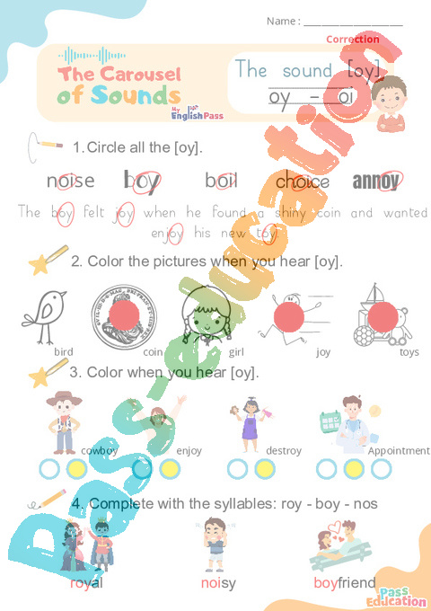 Correction [oy] oy oi – Phonologie anglaise – Carousel of Sounds – Fiche pdf