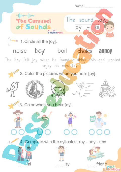 Son [oy] oy oi – Phonologie anglaise – Carousel of Sounds – Fiche pdf