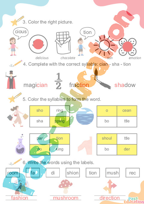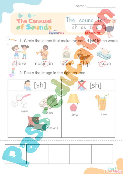 Correction Le son [sh] sh ss ti ci – Phonologie anglaise – Carousel of Sounds – Fiche pdf