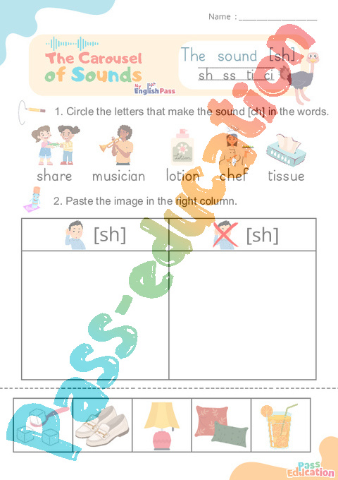Le son [sh] sh ss ti ci – Phonologie anglaise – Carousel of Sounds – Fiche pdf