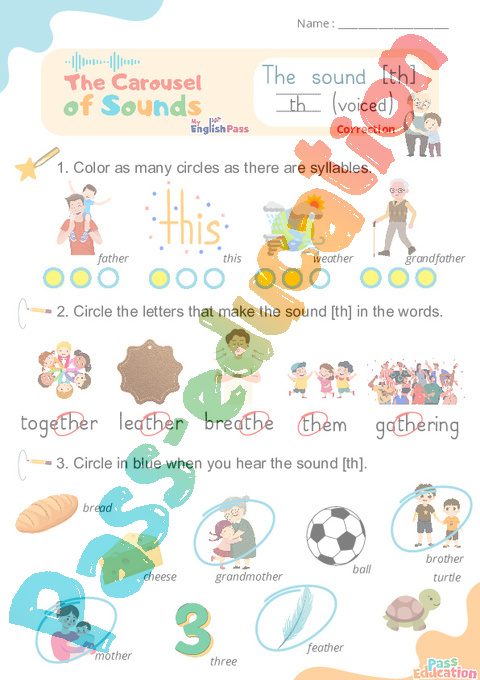 Correction Le son [th] – Phonologie anglaise – Carousel of Sounds – Fiche pdf