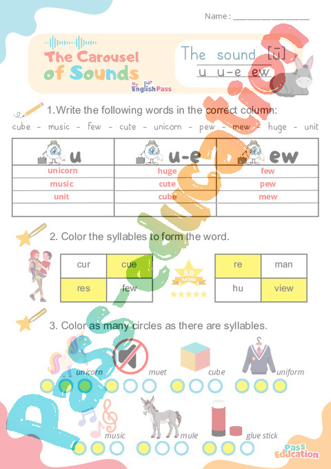Correction Le son [ū] u u-e ew – Phonologie anglaise – Carousel of Sounds – Fiche pdf
