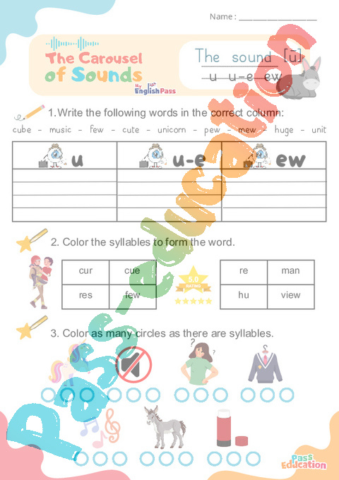 Le son [ū] u u-e ew – Phonologie anglaise – Carousel of Sounds – Fiche pdf
