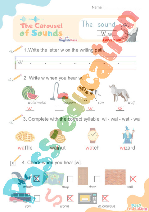 Correction Le son [w] – Phonologie anglaise – Carousel of Sounds – Fiche pdf