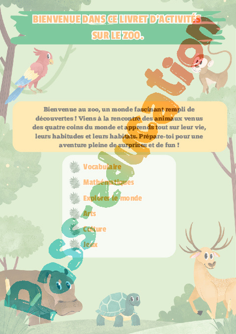 Bienvenue dans ce livret d’activités sur le thème du Zoo.