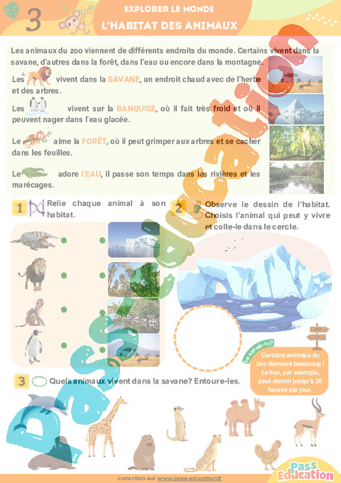 Les animaux du zoo viennent de différents endroits du monde. Certains vivent dans la savane, d’autres dans la forêt, dans l’eau ou encore dans la montagne.
