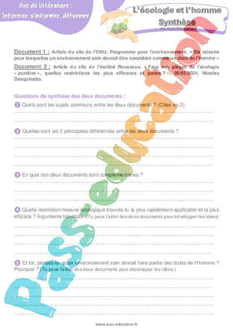 Correction Littérature L’écologie et l’Homme : 2eme Secondaire Synthèse rtf