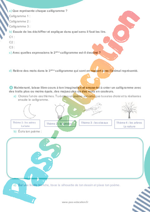 Correction Questionnaire Les calligrammes : 6eme Primaire pdf