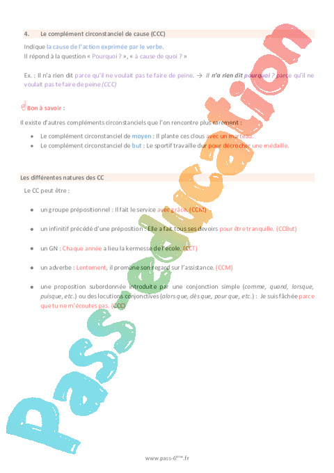 - Le complément circonstanciel de cause (CCC)