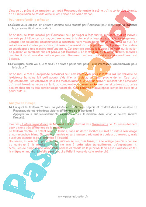 14. En quoi le tableau L’Enfant en pénitence de Nicolas Lépicié et l’extrait des Confessions de Rousseau donnent-ils deux visions différentes de la punition ?