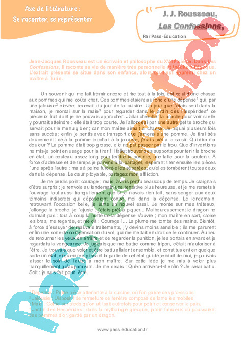 Littérature Les Confessions (J. J. Rousseau) : 3eme Secondaire rtf